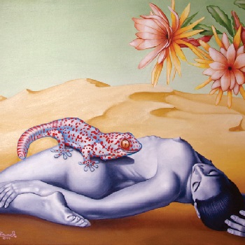 Troy Bunch’s paintings, which he would call imaginative realism and/or surrealism, usually depict women juxtaposed with images from nature and dreams.