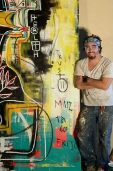 Born in Bogotá, Colombia, Nico Amortegui, or "MALO", has lived and worked in the Southeast since arriving to the United States in 1996. Since age 15, Nico has been active in the fields of photography, design, and visual arts. A product of a large, close-knit family, Nico grew up surrounded by artists, learning carpentry, photography, interior design, and painting. Throughout his 20s, he focused on photography, traveling throughout the US to shoot for various modeling agencies, as well as surf and skate magazines. MALO resides in Charlotte, NC with his wife and two daughters. He now focuses on painting and sculpting and woodworking with found objects.
