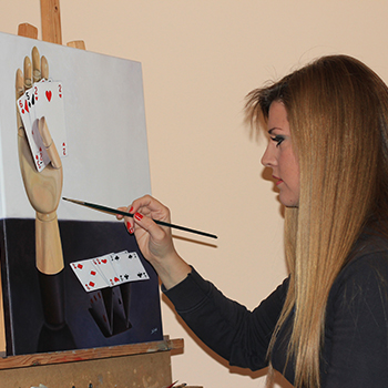 Soraya Güell is a Spanish artist, born in Girona in 1985. She began painting in 2008 when social reality led her to have some free time. She decided to start drawing, starting with family and friends, then she had the feeling that she needed to add colors in her drawings and gradually, some landscapes and interiors with still life. She is currently working on a new project whose works reflect the sketch of a glamorous and exciting world to get lost, an optimistic way of thinking about how we would like to see the world and things. Ideal scenes, but practically impossible or difficult to implement. Güell plays with uniting the continuous actual present and future through illogical reflections with a touch of surreal humor.