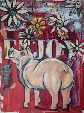 "It’s a complicated noisy world, in which we all keep being bombarded with visuals caring all kindof messages: How should we look like; How do we need to live our lives; How wrong we all are. In my artwork these messages get a cynical vibe while clashing with verity of grotesque figures - formed using expendable materials,such as Paper and cardboard, to emphasize our temporary and poor existence.Happiness is out there, when you follow the route trying to reach fulfillment, and success, you find yourself at the middle of a cluttered path. While standing there, taking a break, I wish to give you something to recognize, something that will make you smile."